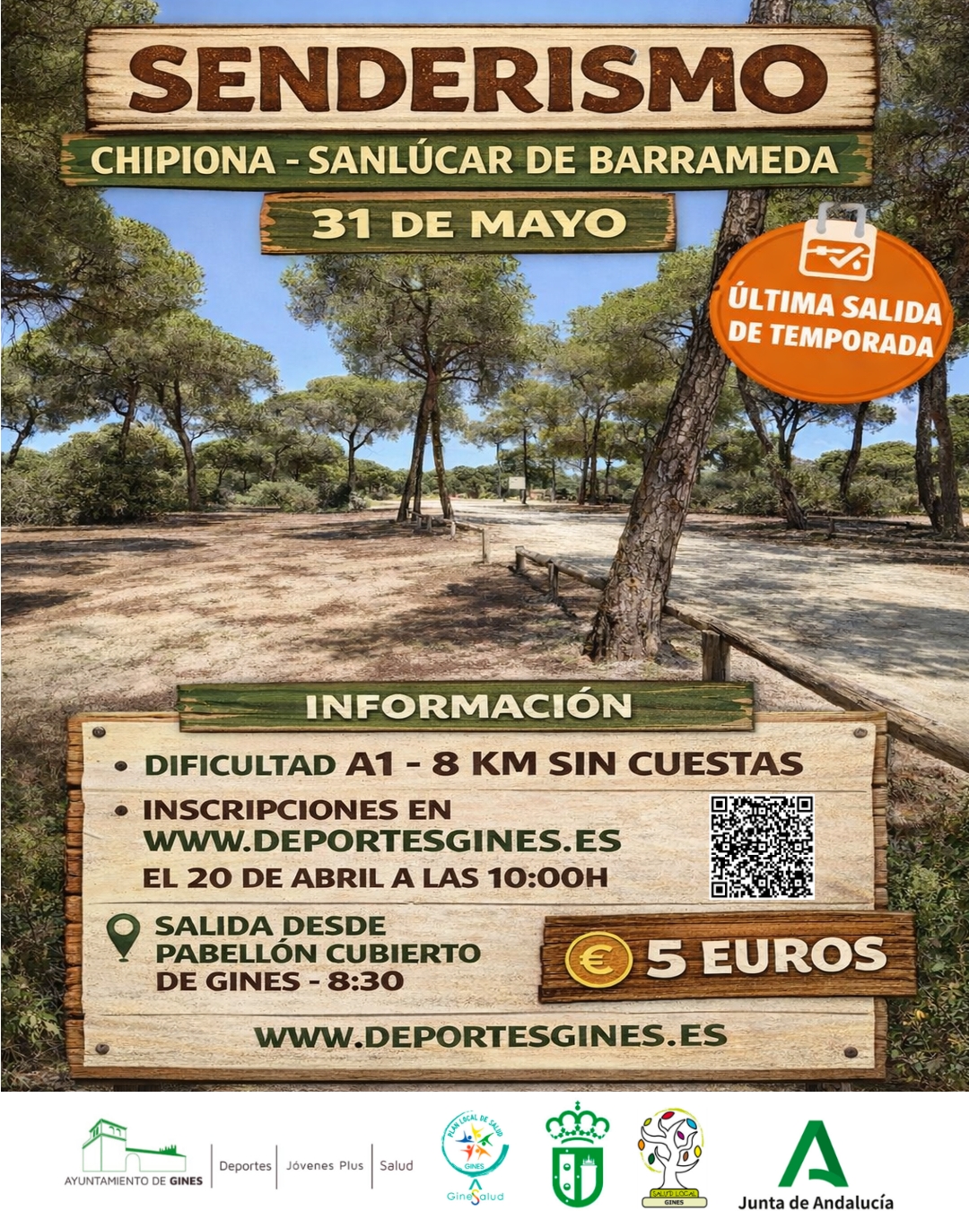 SENDERISMO 31 DE MAYO- CHIPIONA- SÁNLUCAR DE BARRAMEDA – NIVEL A1-8KM SIN CUESTAS
